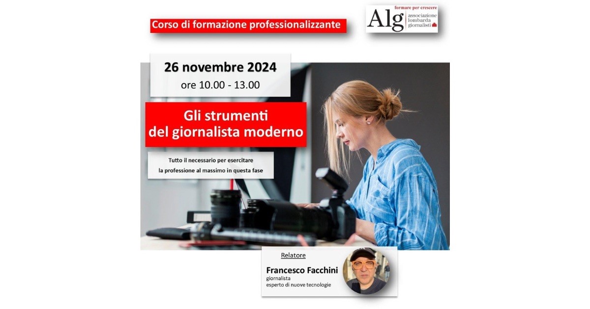 Per iscrizione e pagamento: https://quoteiscrizione.alg.it/corsi/gli-strumenti-del-giornalista-moderno/