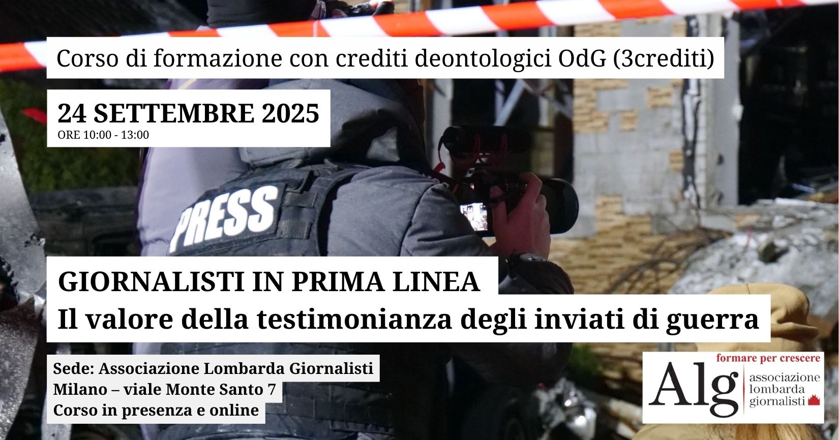 In concomitanza con la mostra “Il valore della testimonianza – le foto di Andy Rocchelli”, la Alg propone un corso di formazione professionale continua sul ruolo del giornalista e fotoreporter inviati di guerra.