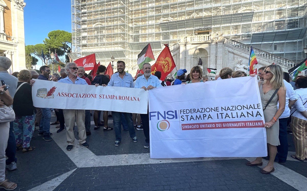 A Roma, Fnsi e Stampa Romana, con decine di associazioni, hanno partecipato alla manifestazione di piazza del Campidoglio, ricordando che vittima della guerra in atto è anche l’informazione, con il prezzo altissimo pagato dai cronisti locali, mentre le autorità israeliane continuano a impedire l’accesso a Gaza alla stampa internazionale.