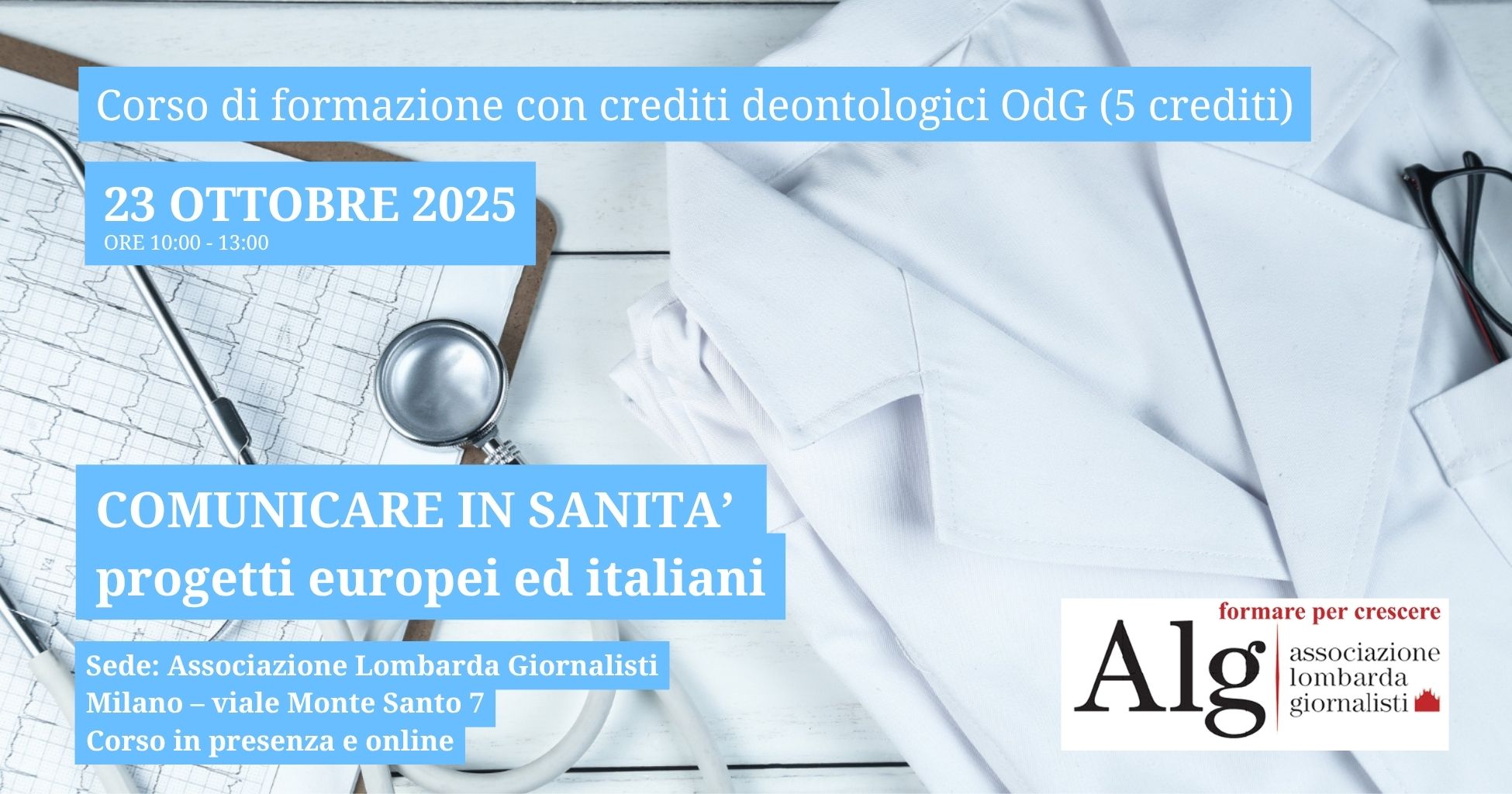 Domani nella sede dell’Associazione Lombarda Giornalisti si terrà il corso di formazione continua: COMUNICARE IN SANITA’ – progetti europei ed italiani