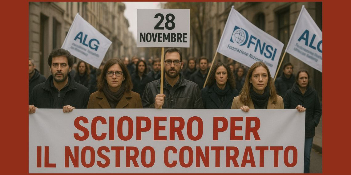 Un giorno di sciopero per il rinnovo del contratto nazionale di lavoro giornalistico scaduto nel 2016. La Giunta esecutiva della Federazione nazionale della Stampa italiana, riunita a Roma mercoledì 12 novembre 2025 insieme con la Consulta delle Associazioni regionali di Stampa, ha deciso all’unanimità di proclamare per venerdì 28 novembre l’astensione dal lavoro dei giornalisti di quotidiani, periodici, agenzie di stampa, testate online, radio e televisioni nazionali che applicano il contratto di lavoro Fnsi – Fieg..
