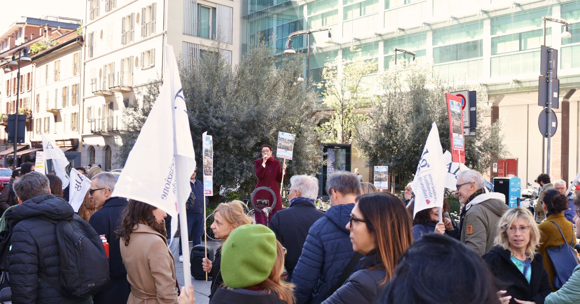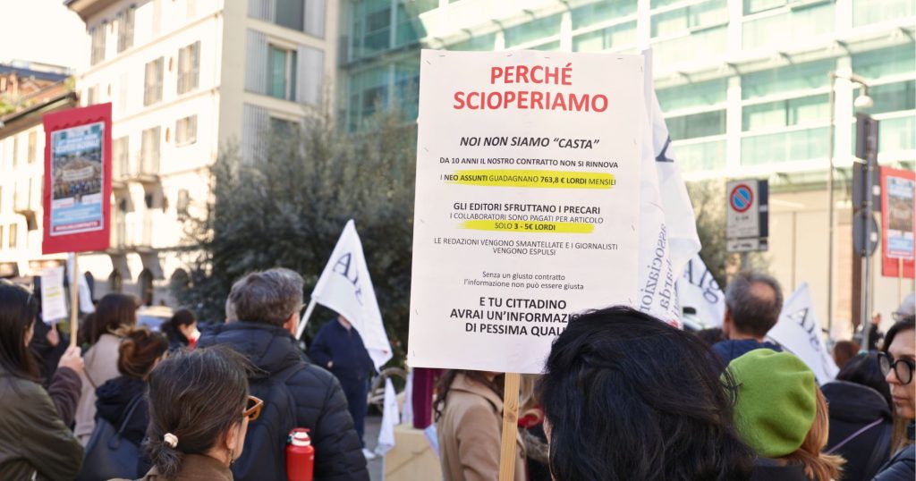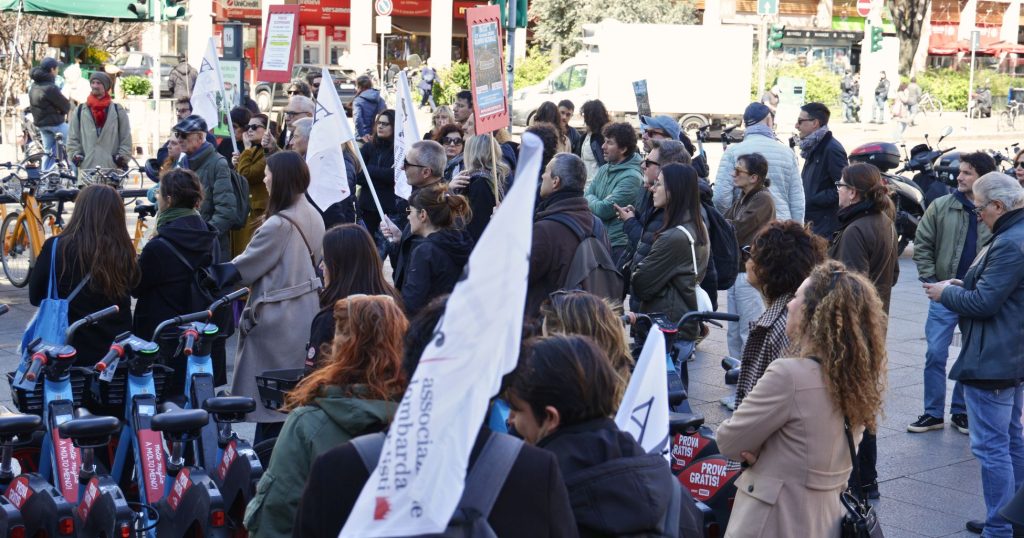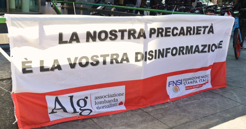 Il presidio di Milano si inserisce in una mobilitazione nazionale che coinvolge i giornalisti in molte città italiane.