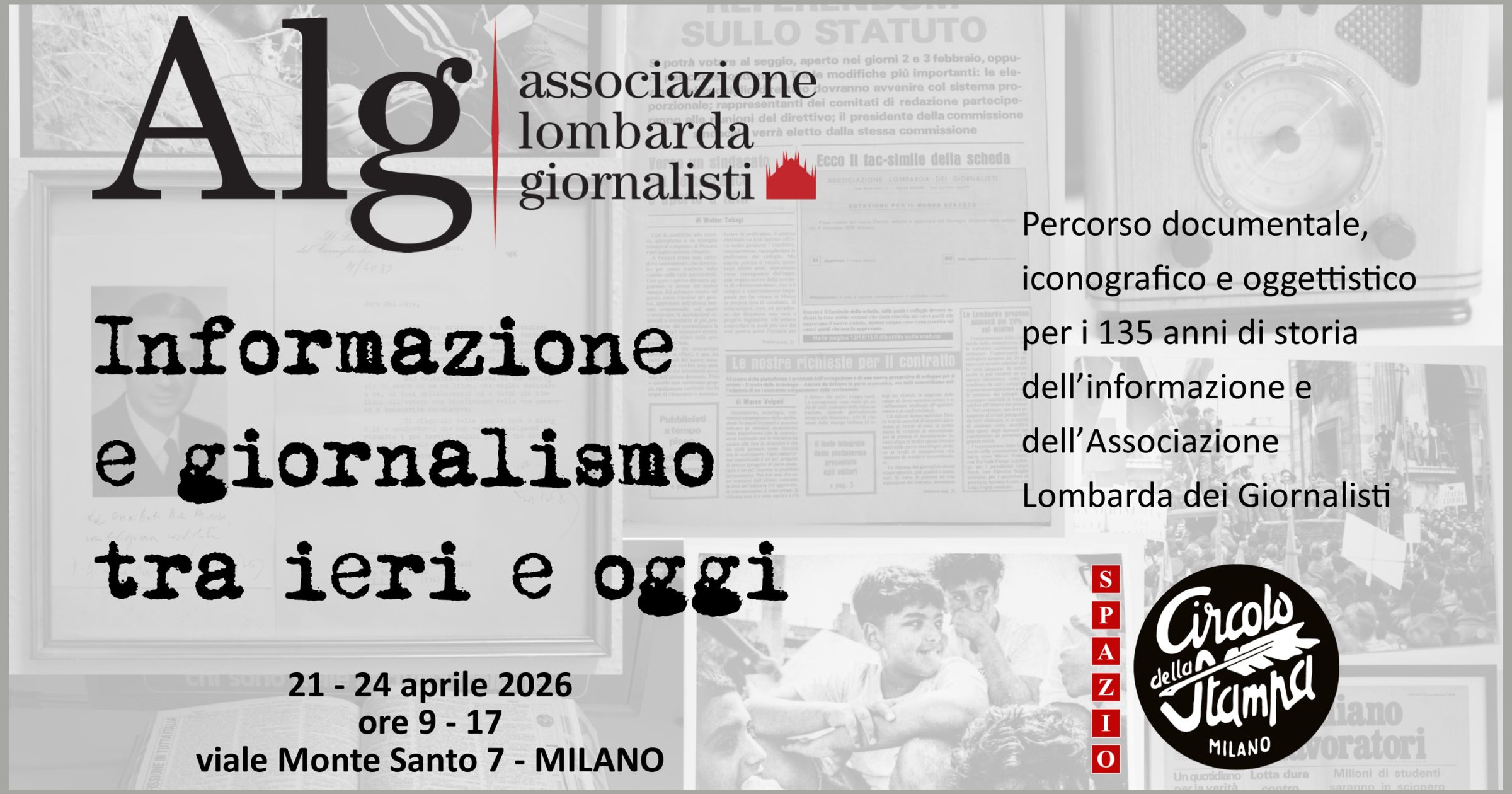 Durante la settimana del Fuorisalone 2026 e la Milano Design Week, l’Associazione Lombarda dei Giornalisti, in occasione dei 135 anni dalla sua nascita, presenta il percorso espositivo “Informazione e giornalismo tra ieri e oggi”, un viaggio attraverso la Storia della comunicazione.